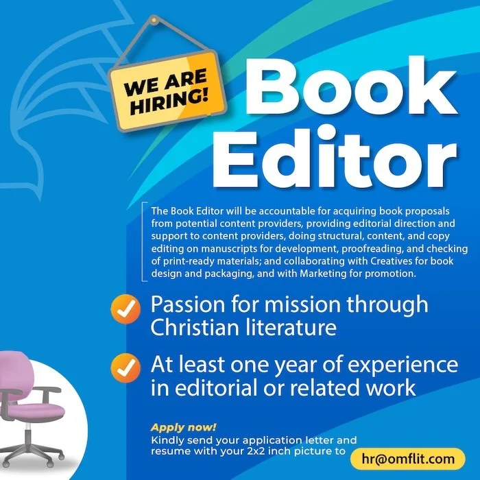 You can say we’re looking for book makers, book movers, and book keepers! This job opening at OMF Literature offer a rare opportunity to excel professionally and put your heart in a Christian ministry at the same time.